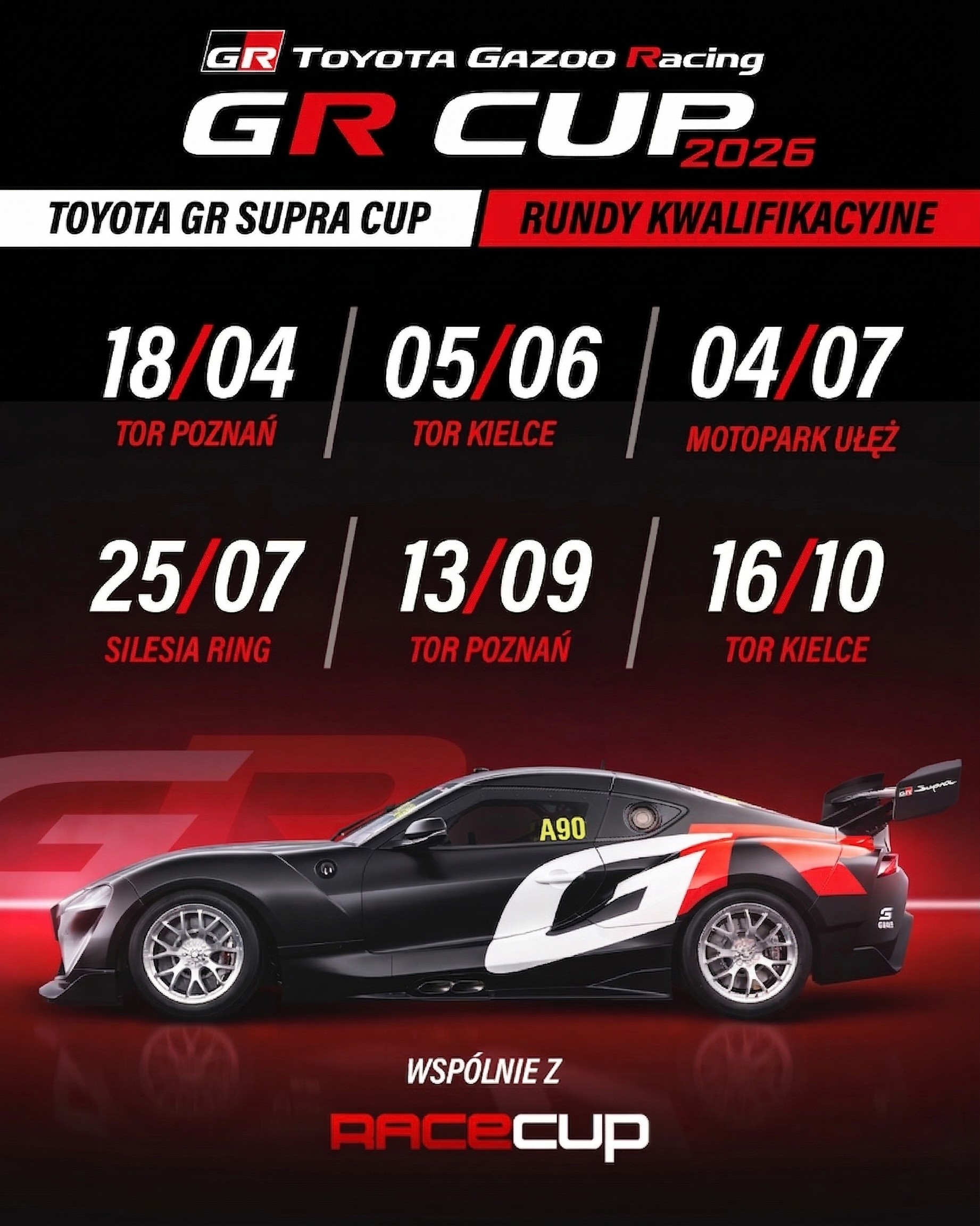 1. runda TOYOTA GR SUPRA CUP 2026 odbędzie się 18 kwietnia na Torze Poznań podczas zawodów RACE CUP.